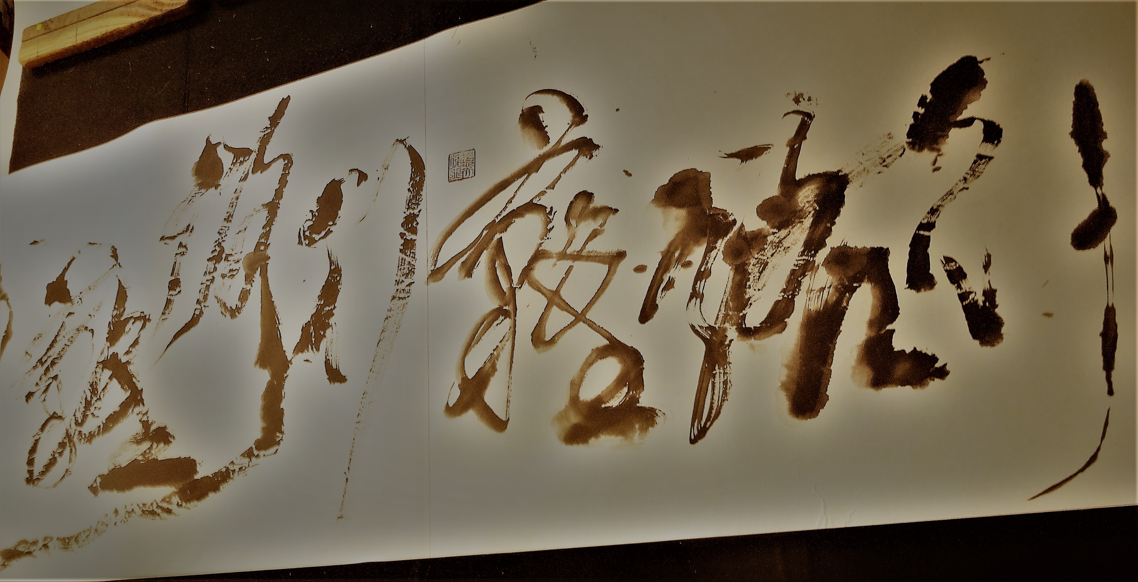 本人發明斧筆 木夾加長手臂 揮灑大字綁書…